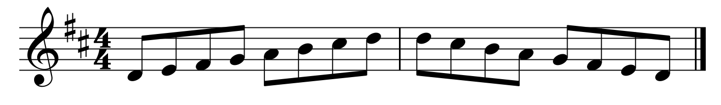 臨時記号では同じ高さ、同じ小節内でのみ指定された音が変化するだけでしたが、調号ではFがシャープすると指定されている場合、すべてのFがF#になります。
