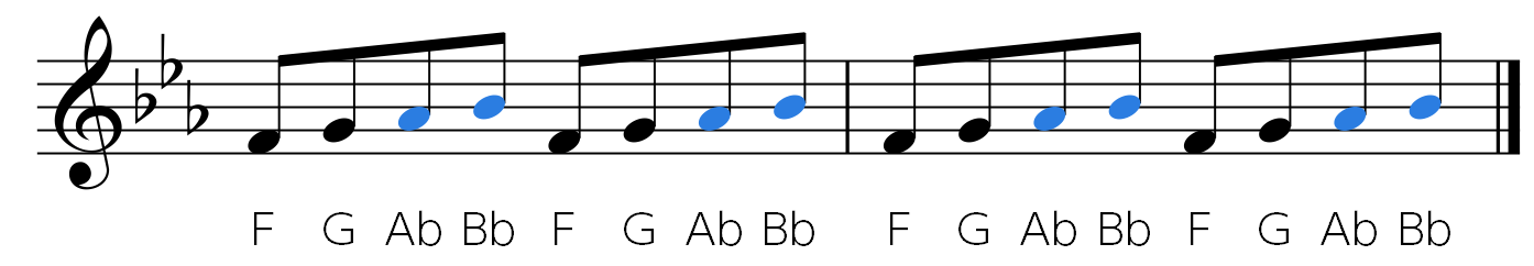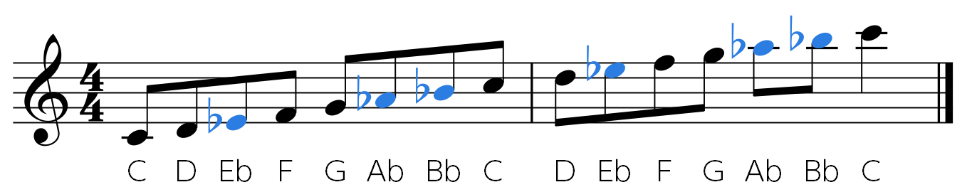 この譜例ではすべてのE、A、BがE♭、A♭、B♭になっています。